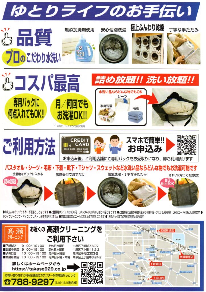 お近くの髙瀬クリーニングでご利用頂けます