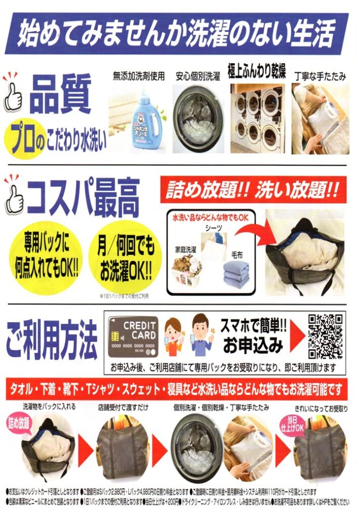 ・水洗い・高温ガス乾燥に適さない洗濯物はそのままお返しいたします